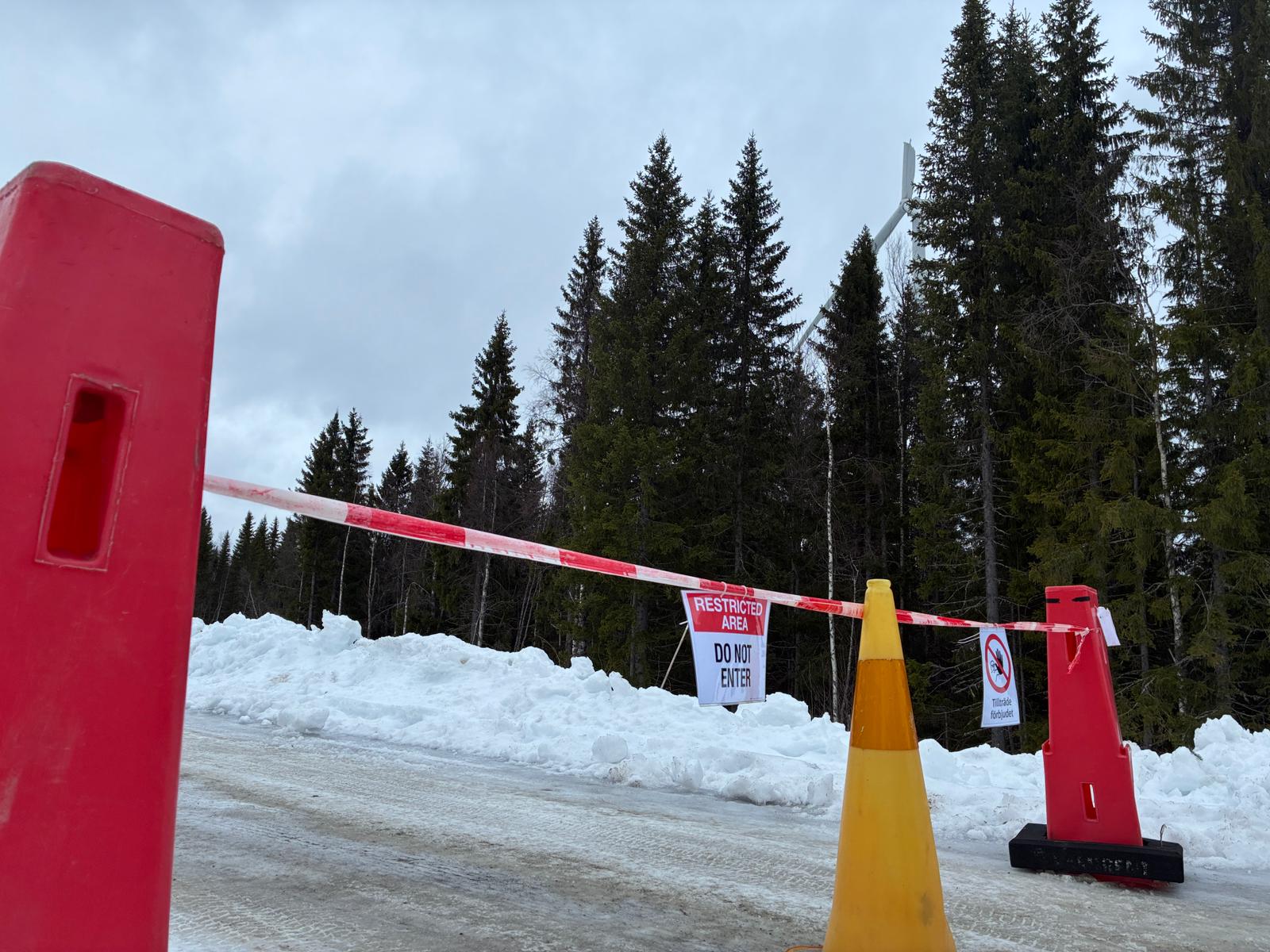 A temporary safety distance around the affected turbine (Björkvattnet 05 – BJV05) of 250 meters must be respected as a precaution for all users of the area. The road leading up to that specific turbine has been blocked temporarily